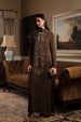• This olive malai georgette dress comes with an intricately adored floral embellished neckline. With pearls down the back neck slit, this elegant dress is one to remember. Pair with "Ahlat Dupatta" to complete the look.