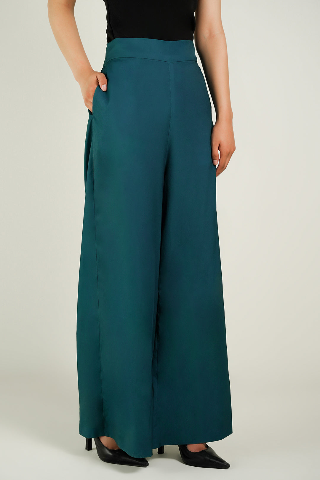 These flared pants made in soft crepe fabric in print features semi-elasticated waist band, side zipper opening, hook & eye closure, side pockets and flared hem.