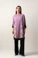 Crafted in soft printed crepe, this article features a boat neckline finished with a delicate blanket stitch at the front. Designed with batwing sleeves and a rounded hem, the silhouette offers an effortless, relaxed elegance.