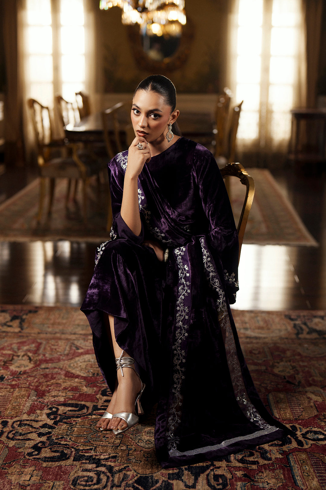 • Velvet stole with sequin embroidered organza inserts. Pair with "Areem dress" to complete the look.