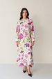 Crafted in soft poly cotton, this dress features a crew neckline with a front hook-and-eye closure and delicate ruffle detailing.