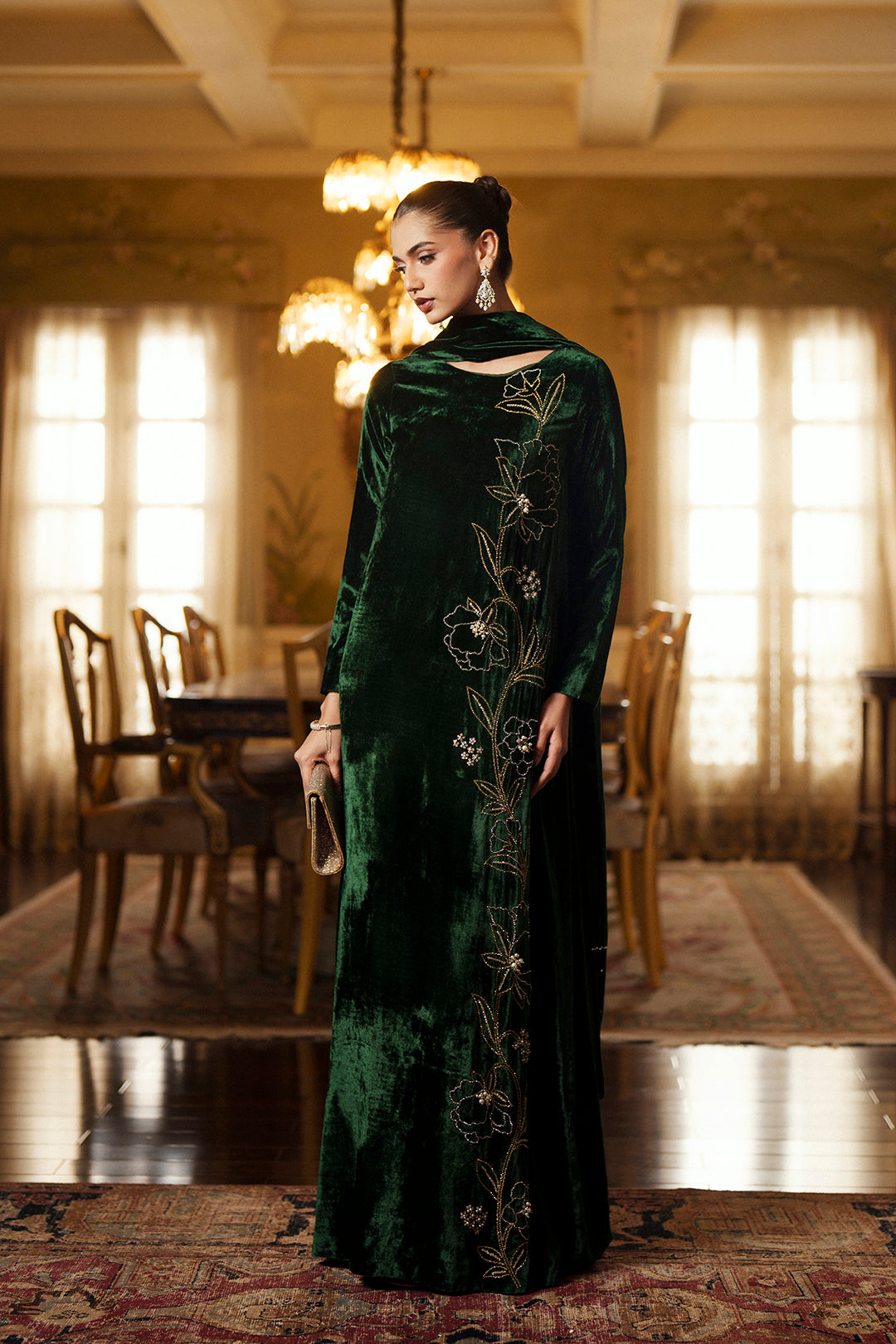 • Velvet Stole with crystal embellished border, Pair with "Azun Dress" to complete the look.
