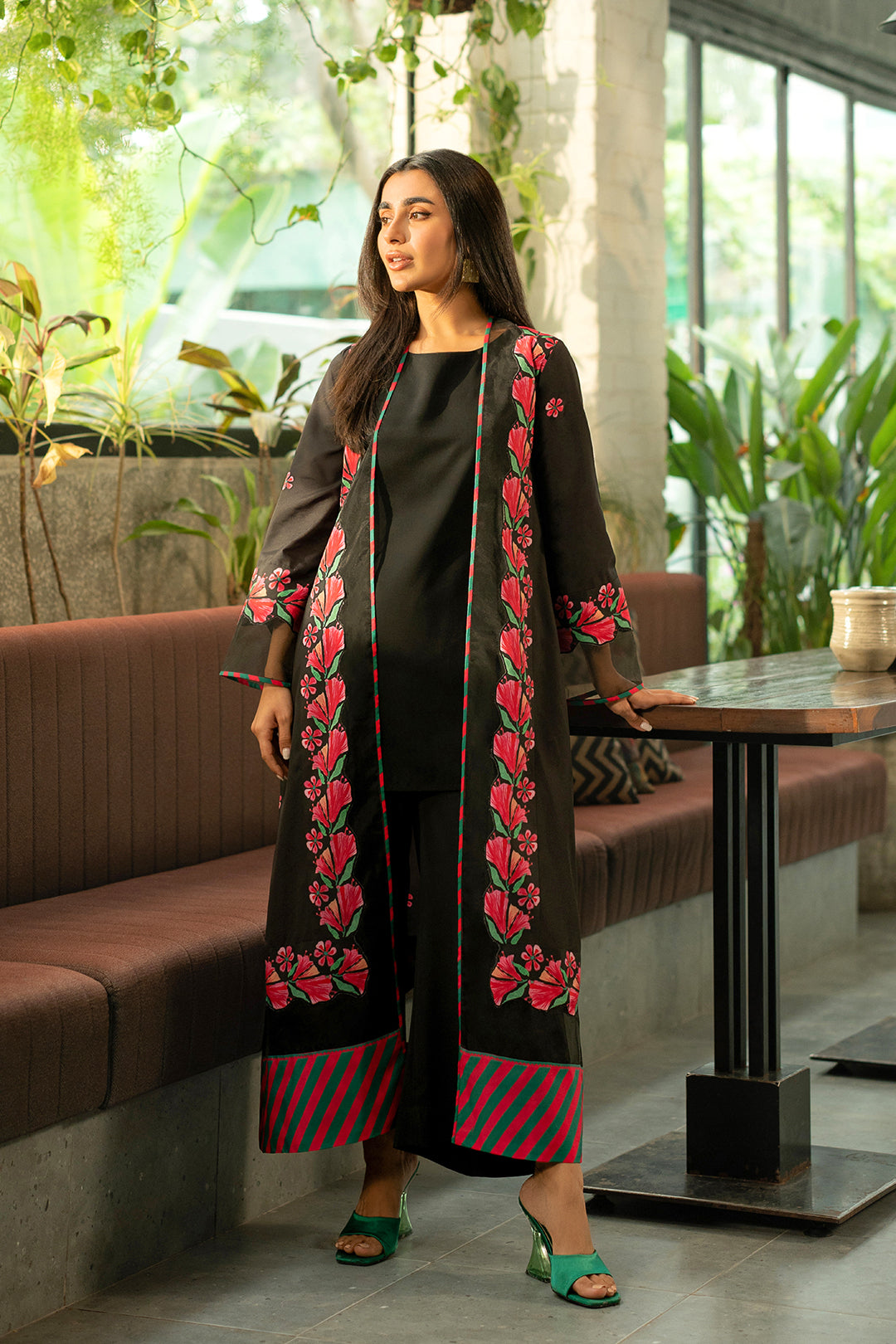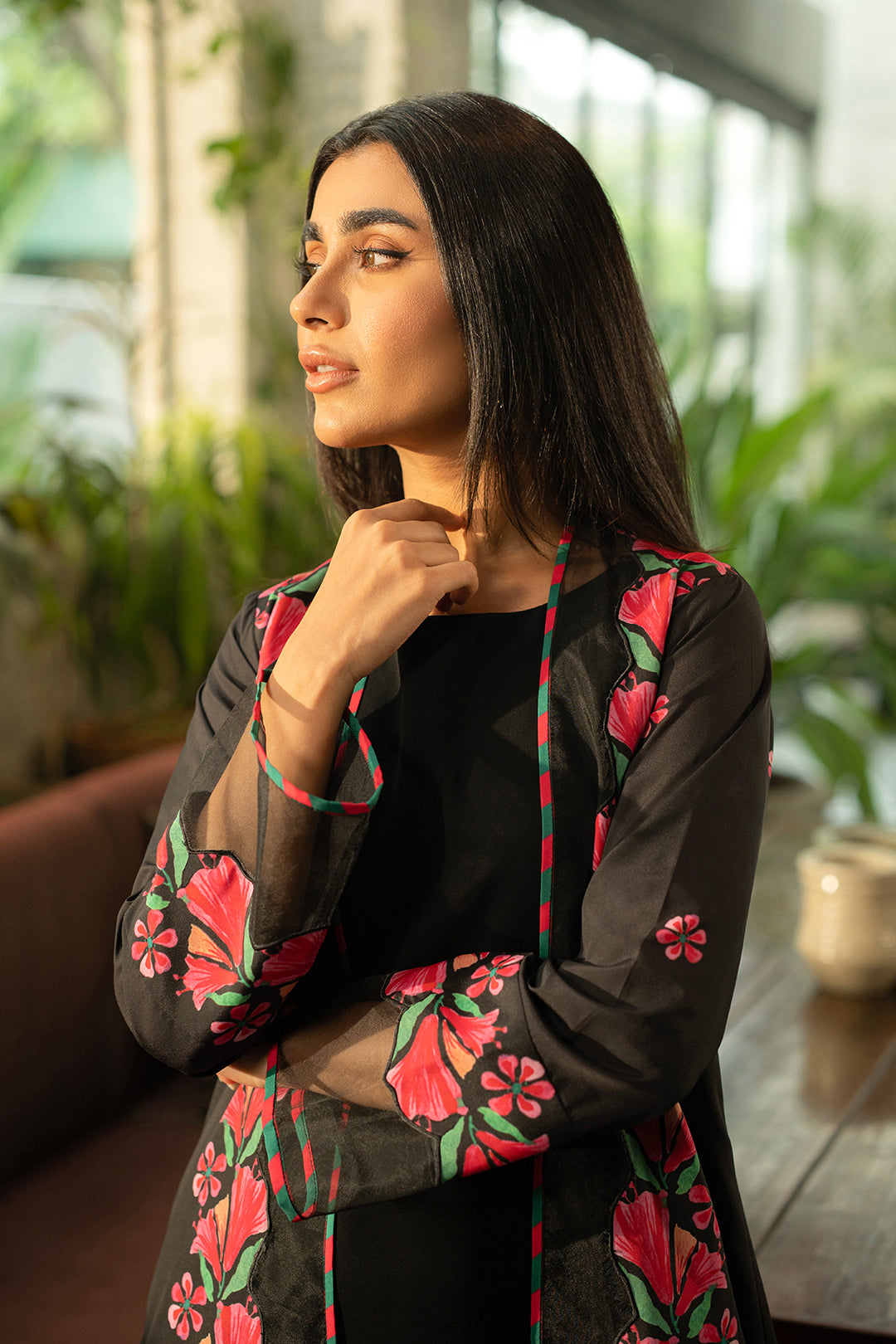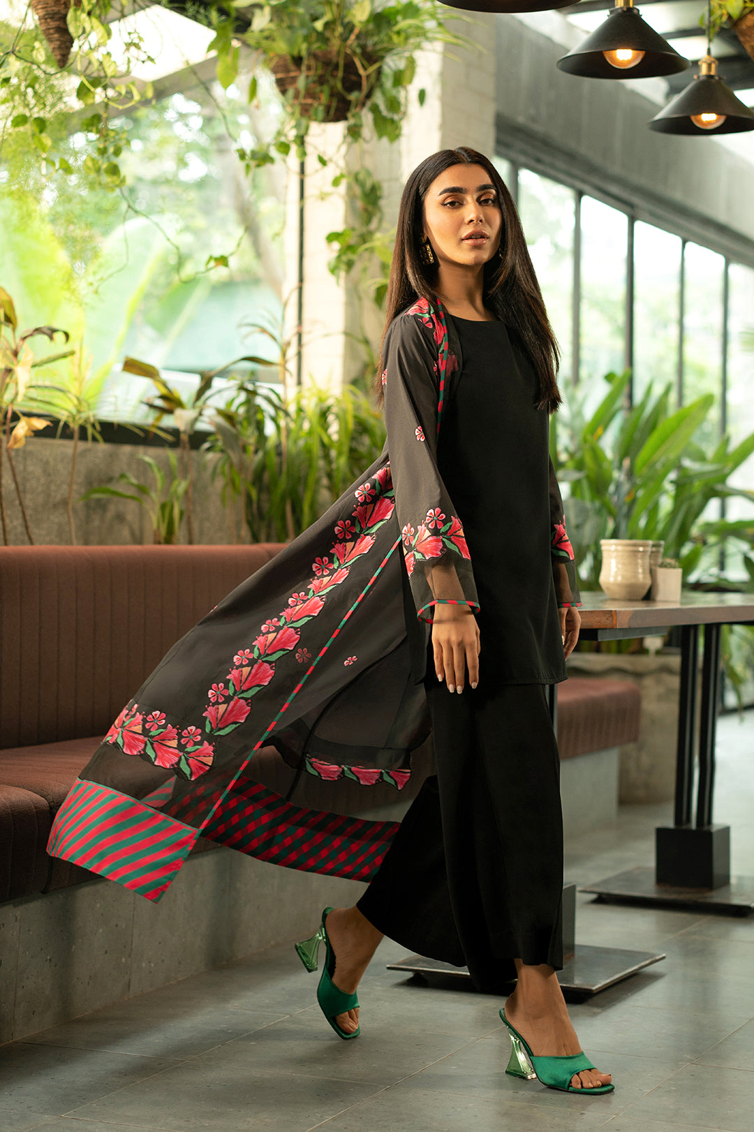 Black shrug made in soft crepe fabric.