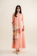 This breeze net dress features a crew neckline with a back neck slit. Designed with basic full-length sleeves and flared silhouette, it is detailed with printed crepe patching on the sleeves and front, and comes with a Chermuese silk inner featuring a square neckline and normal armholes.