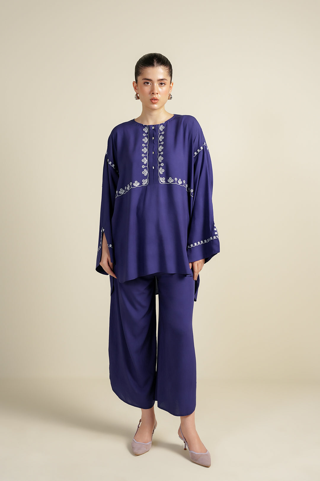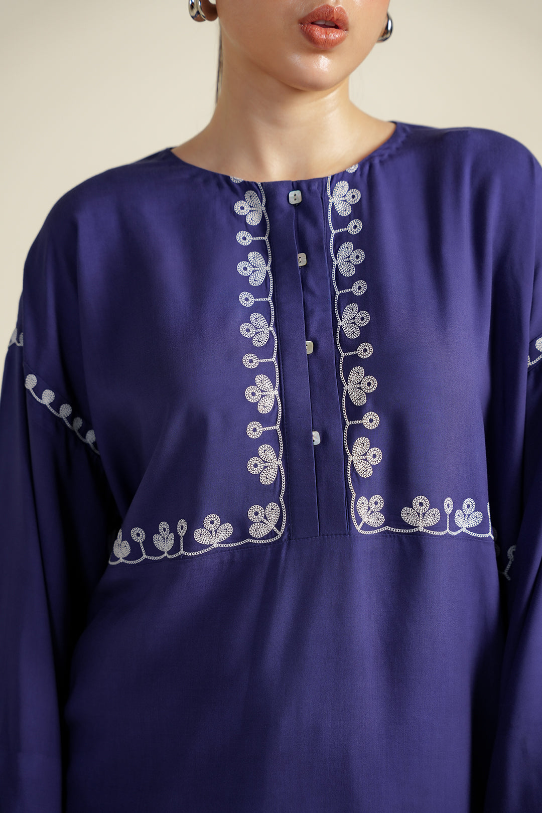 Crafted in soft viscose, this article features multihead embroidery on the front yoke and sleeves.