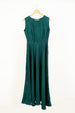 This sleeveless green dress made in soft dyed viscose fabric features round neck, bodice with waist darts and bust darts, side zipper opening and flared hem. It can be paired with "Dashkin Shrug" to complete the look.