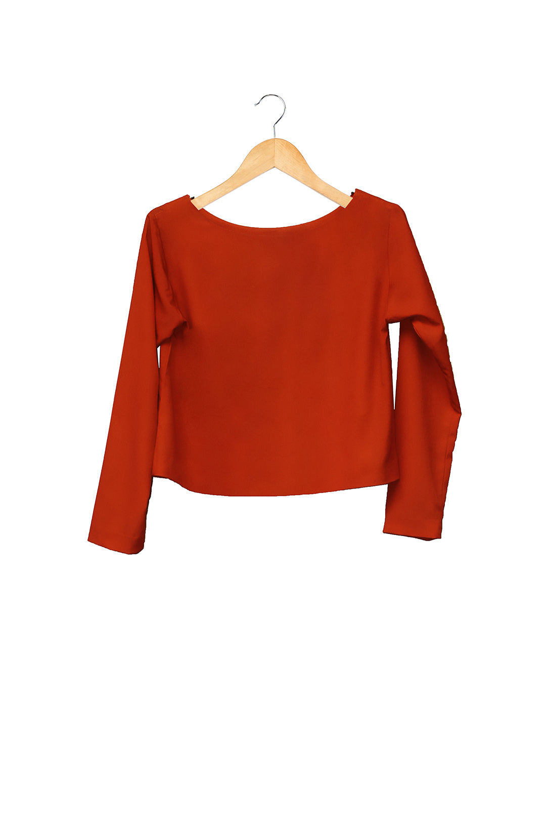 Crafted in soft printed crepe. This article features a refined boat neckline, constucted bust darts for subtle shaping, and full-length straight sleeves for a clean, elegant finish.