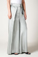 These flared pants made in soft charmeuse silk fabric features semi-elasticated waist band, front zipper opening, hook & eye closure, pleat detail and flared hem.