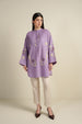 Crafted in soft printed crepe, this tunic features a multihead embroidered front with a band collar and an invisible placket.