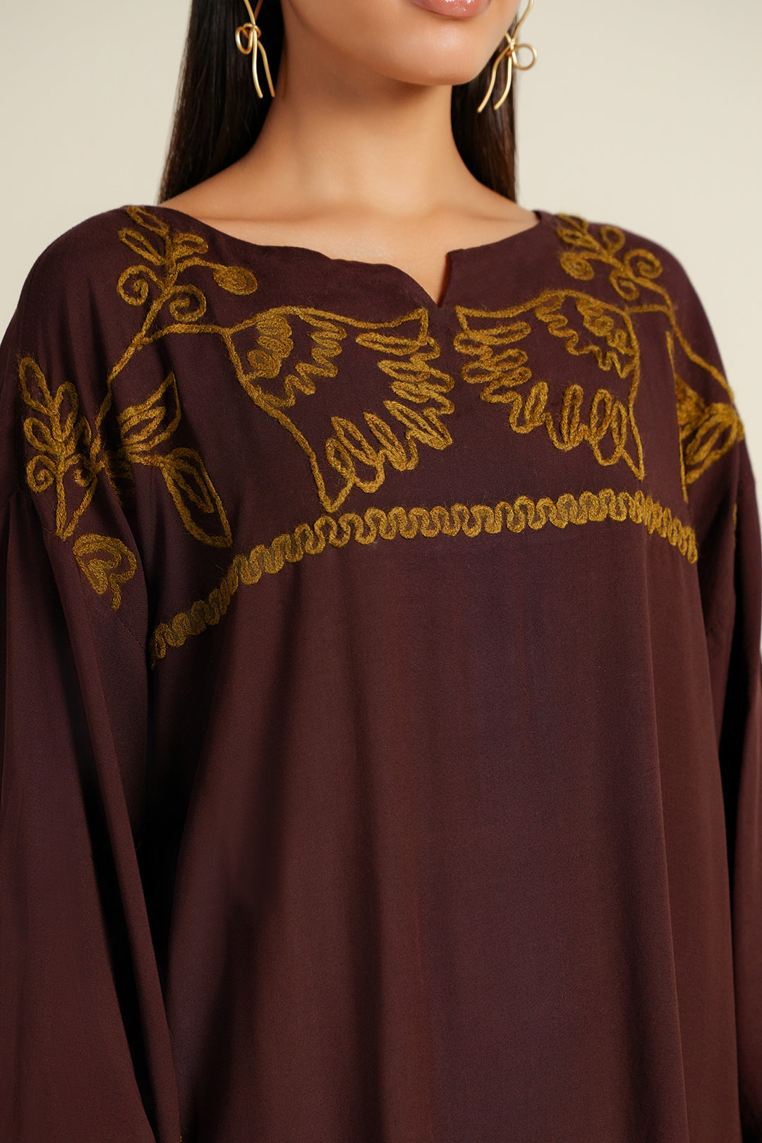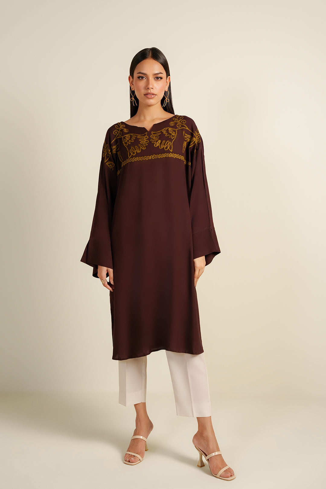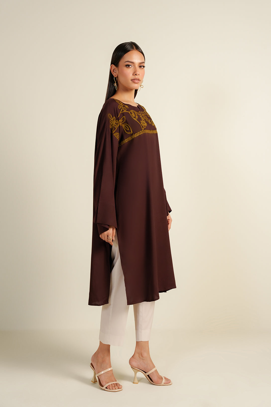 Crafted in soft viscose, this short top features a boat neck with a front V-neck detail.