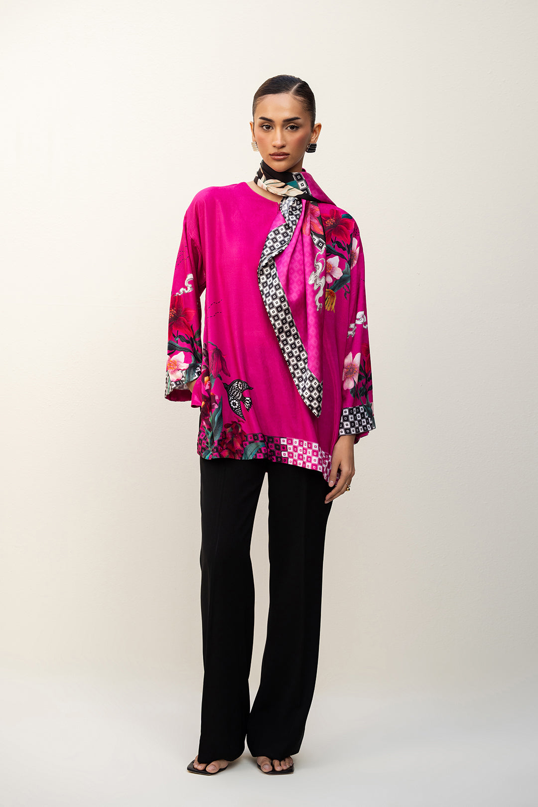 Crafted in soft silk, this scarf features a floral print with butterflies and is finished with finely stitched edges for an elegant, timeless appeal.