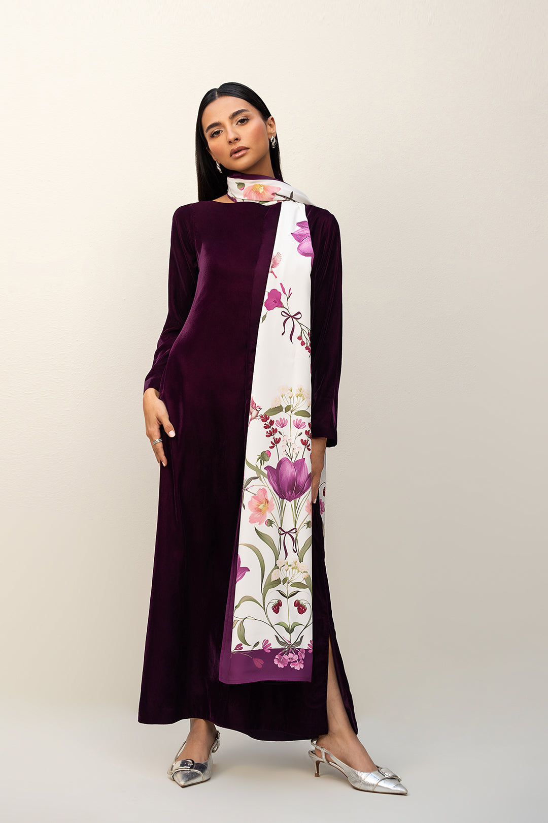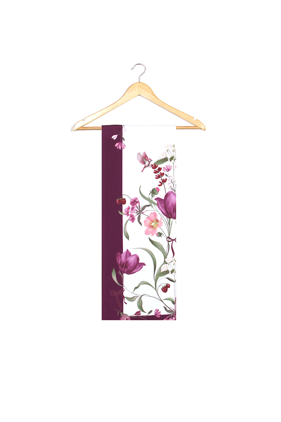 Crafted in soft velvet with a printed crepe lining, this stole features a floral print and is finished with clean, refined edges for an elegant touch.