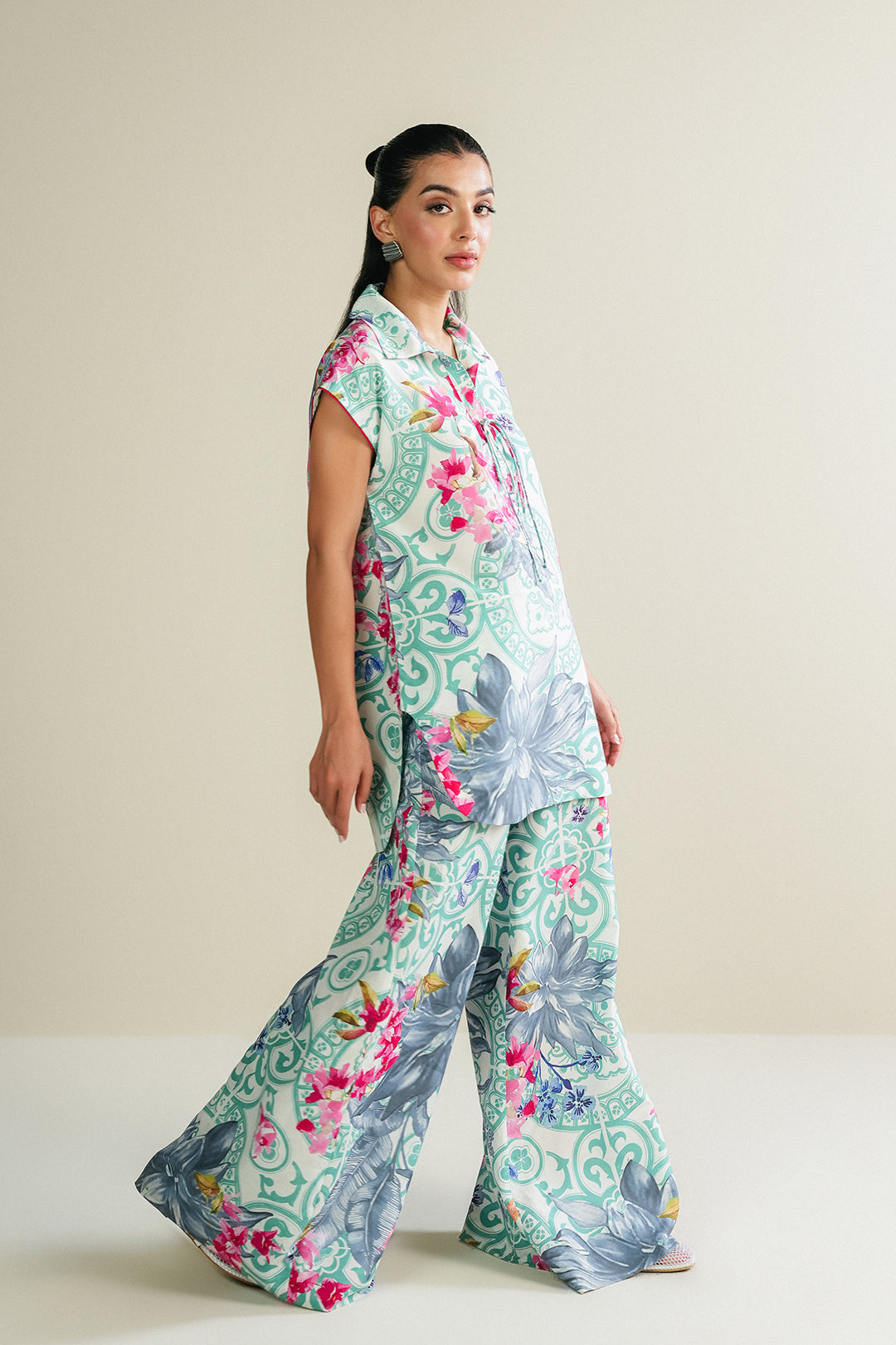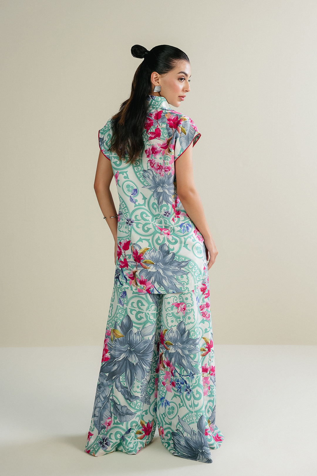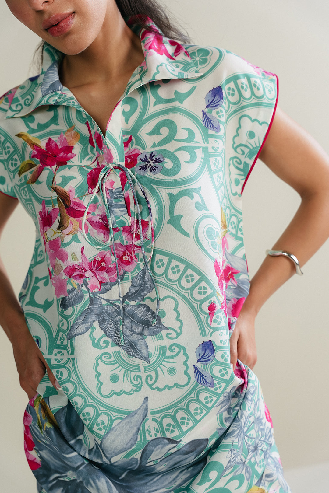 This top made in multi-colored soft air-weave fabric in floral print features collar with placket detail.