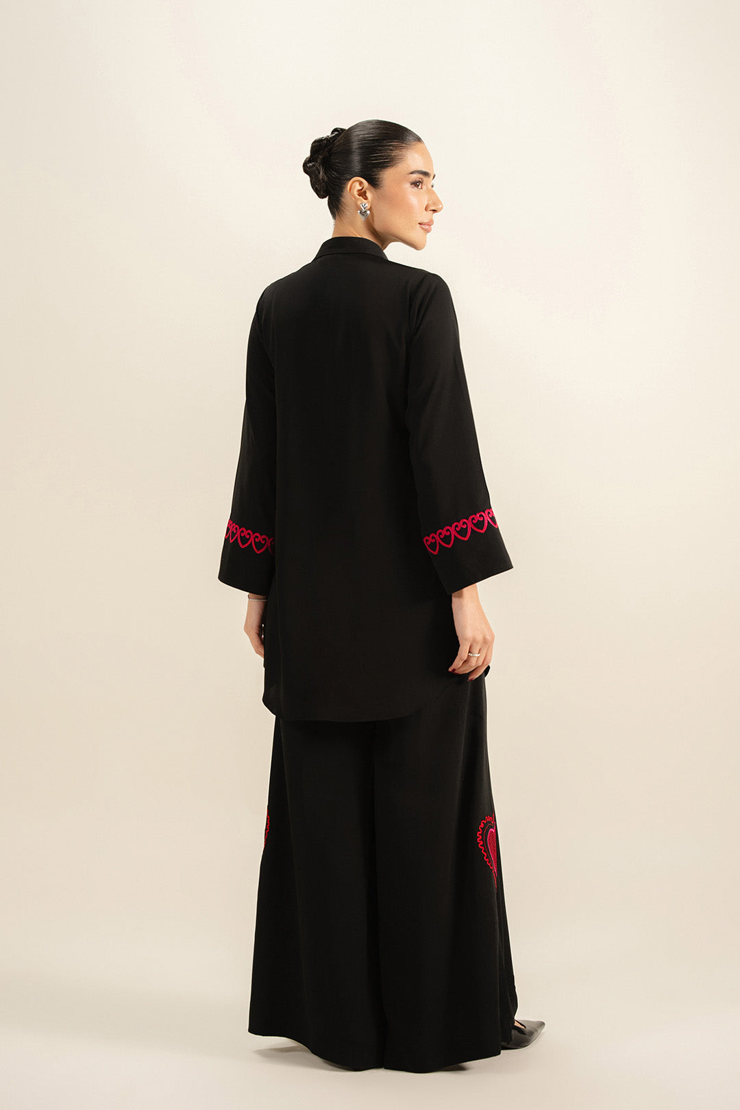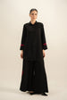 This embriodered crepe button-down features two-piece collar. Designed with full-length sleeves finished with embroidered cuffs, it has a round bottom for a refined silhouette.