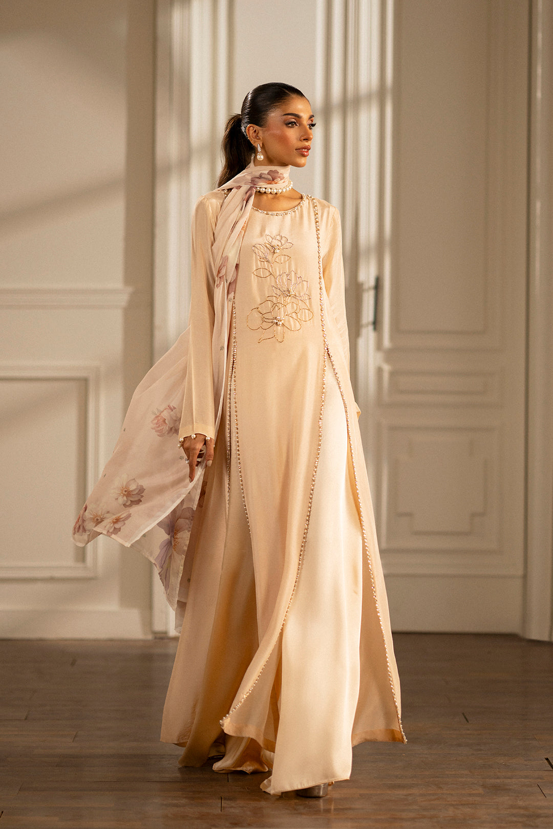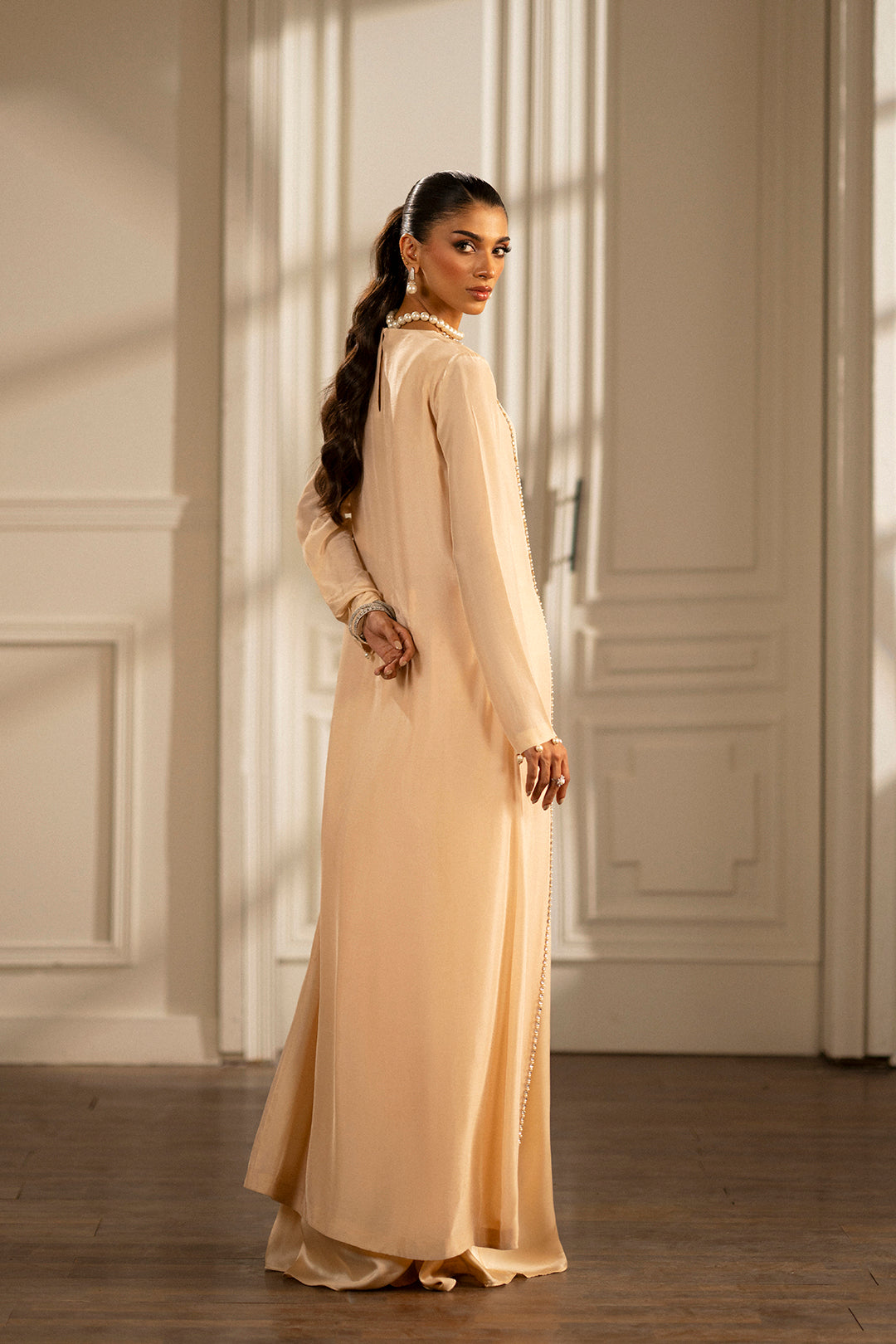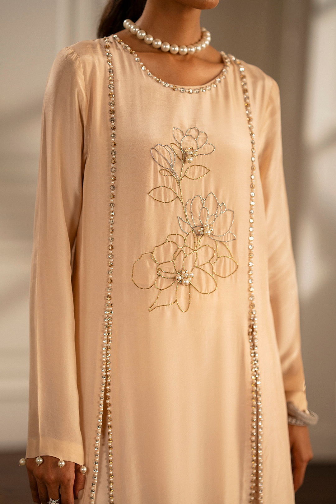 This cream embellished silk shirt brings in modernity with a double-slit detail, moving effortlessly with you.
