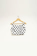 • This sleeveless black & white crop top made in soft crepe fabric in polka dots print features square neckline with darts and side zipper closure.