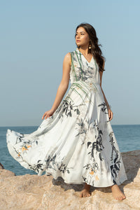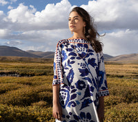 Crafted in soft printed crepe, this button-down dress features a floral placement print and a two-piece collar.