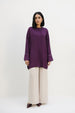 This plum button down made in soft viscose fabric features crew neck, invisible placket with button closure, front panel, drop shoulders.