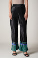 Crafted in printed velvet, these bootcut pants have a hook-and-eye and an invisible zipper side closure. These pants feature a flat-front waist belt with an elasticated back for added comfort.