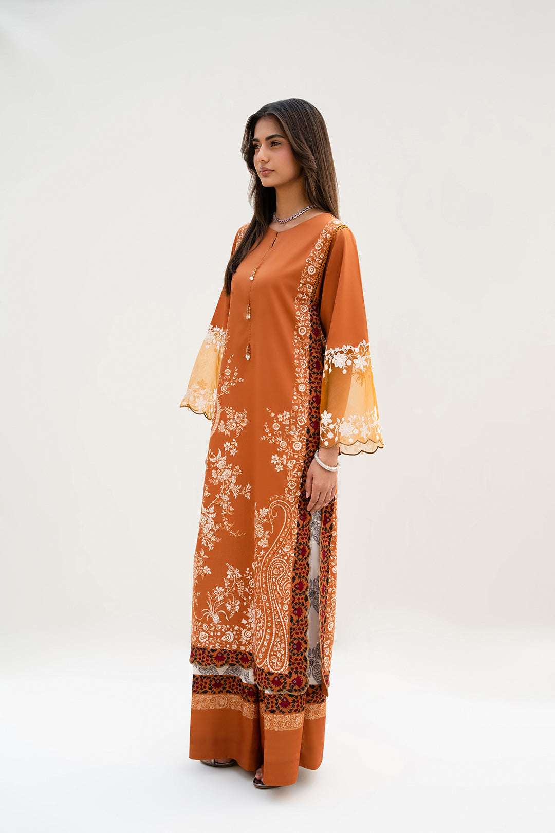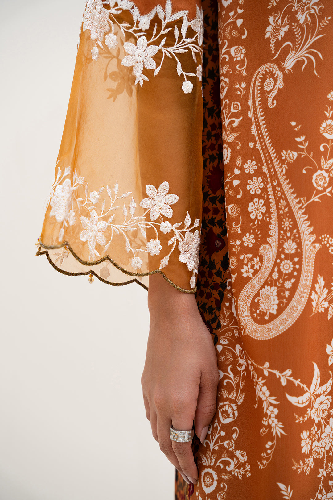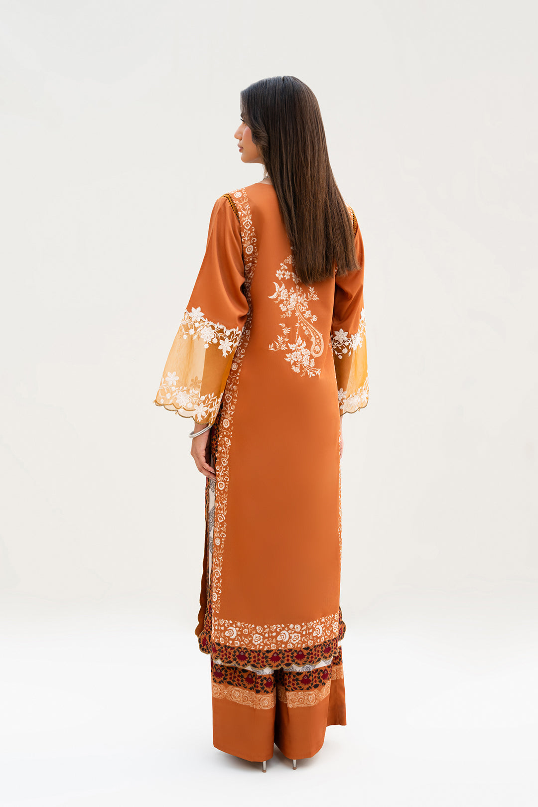 This top made in soft crepe fabric in print features crew neck, front neck slit with hook & eye closure and crystal hanging detail.