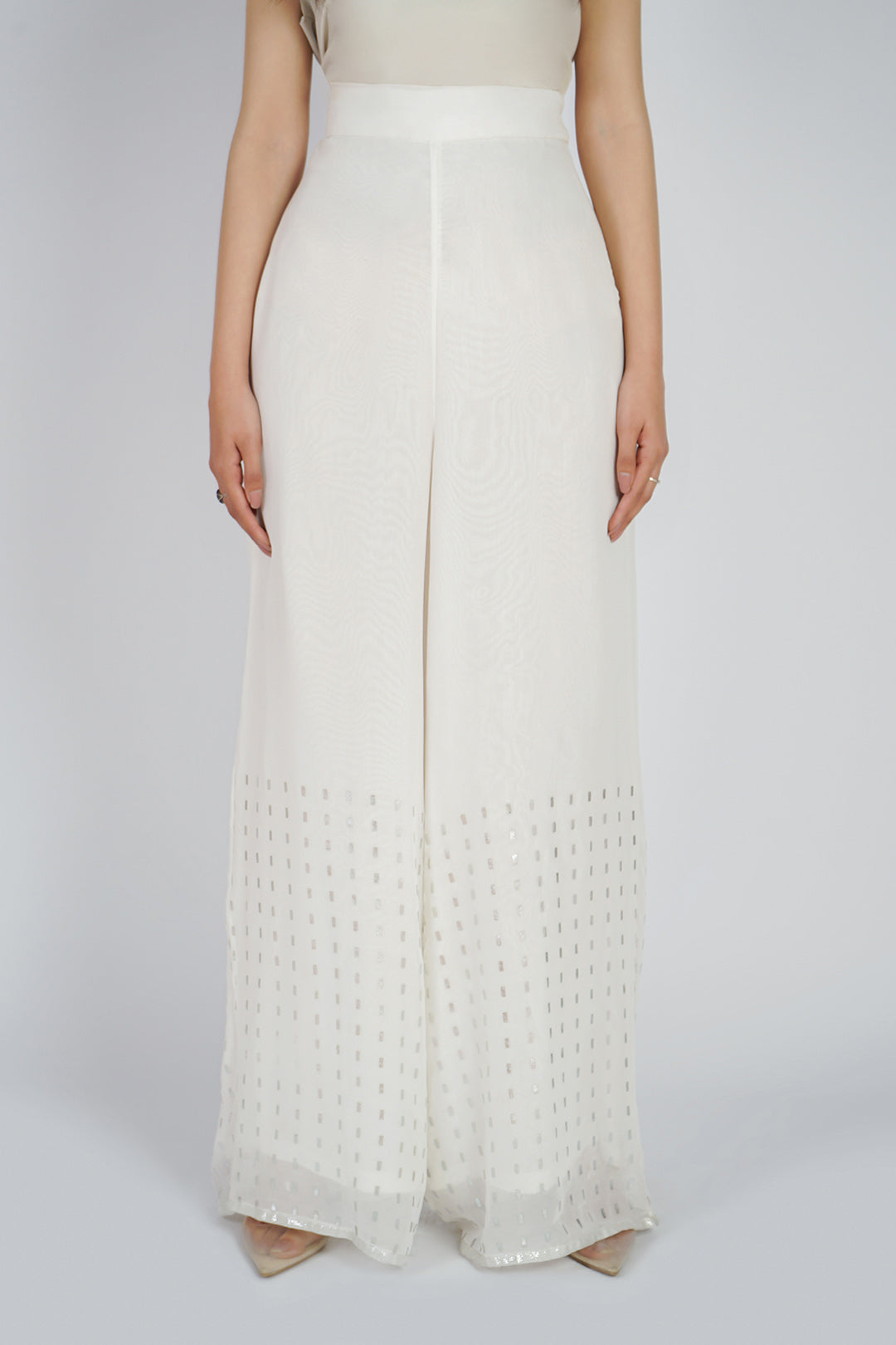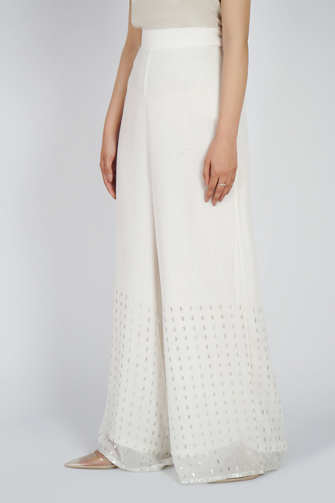Flared pants made in sheer georgette chiffon fabric.